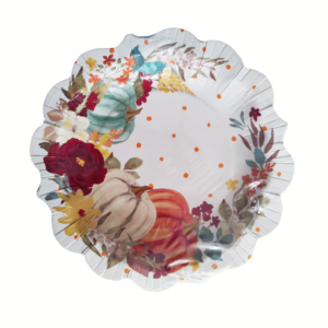 Eye-catching disposable paper plates with trendy floral and geometric prints. Made from food-safe, recyclable paper, these plates are perfect for adding a stylish touch to parties, picnics, and casual meals.